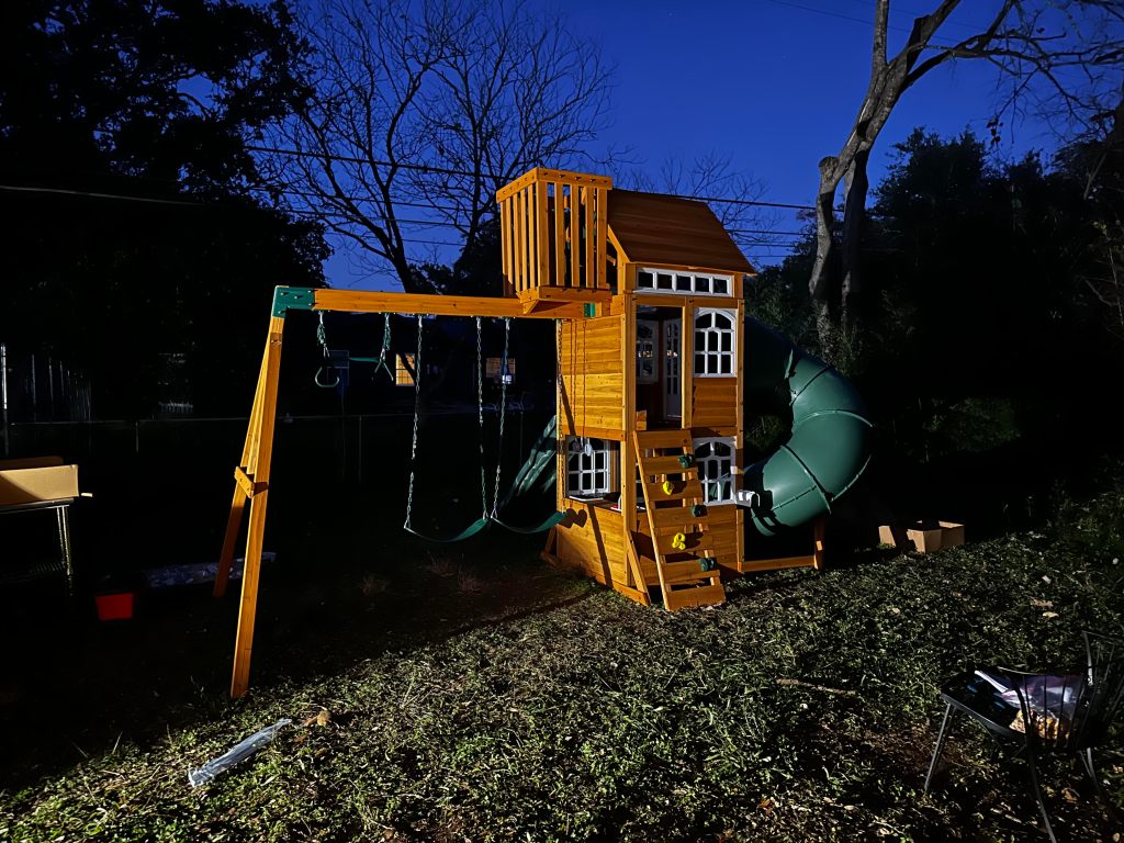 I’ve just finished constructing the new playset in the backyard (with a lot of help from friends and family).